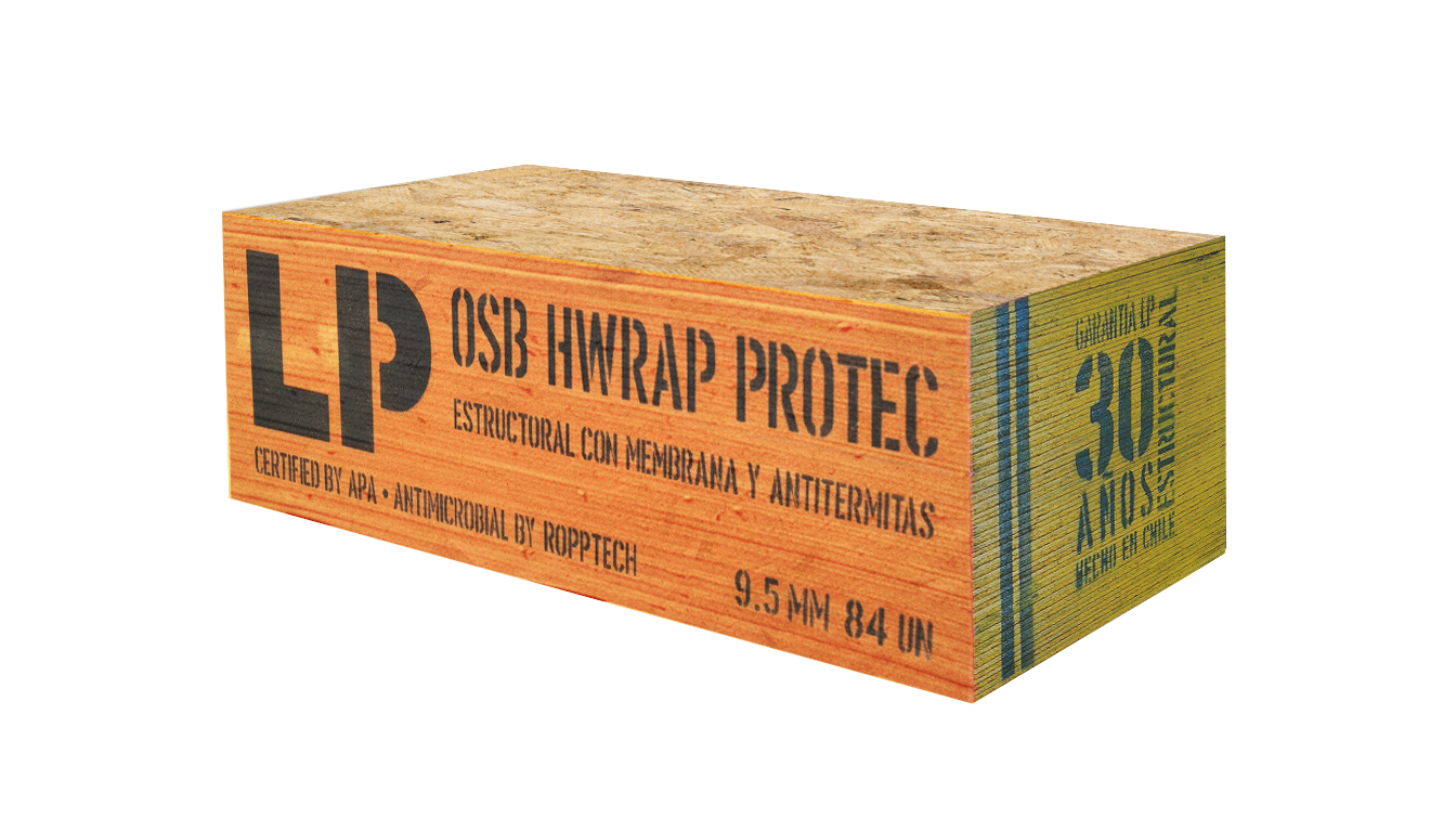 LP OSB HWrap tiene una cara de terminación de color gris que debe quedar siempre al exterior. Esta cara de terminación incorpora una membrana saturada en resina fenólica, la cual, protege el tablero del agua de lluvia y permite el paso de vapor de agua desde el interior al exterior de la vivienda. Además, este tablero permite un mayor grado de exposición a intemperie en zonas muy lluviosas.